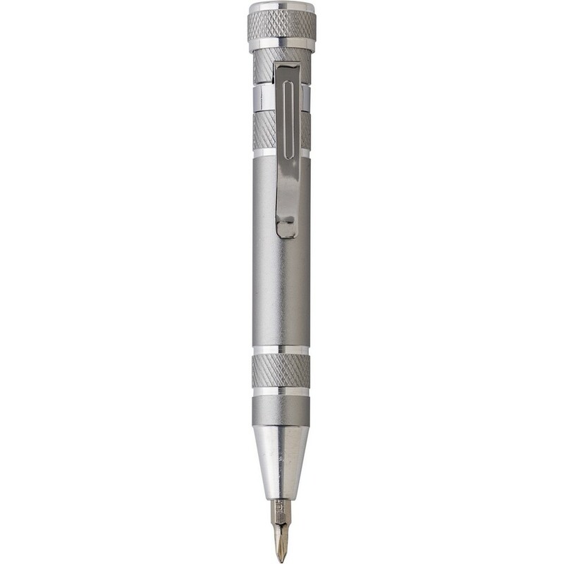 Z uwagi na swoją uniwersalność, Zestaw narzędzi, śrubokręt, 8 końcówek, latarka 3 LED jest doskonałym wyborem dla branży budowlanej, mechaników, elektryków, a także jako praktyczny podarunek promocyjny w firmach technologicznych. Jego niewielkie wymiary (Ø1,56 x 10,8 cm) i waga (94 g) czynią go łatwym do przenoszenia i przechowywania, natomiast neutralny, szary kolor i solidne wykonanie posiadają atrakcyjny i profesjonalny wygląd.